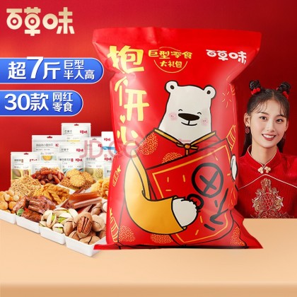 百草味 抱个开心巨型零食大礼包/7斤装 网红猪饲料鸭脖芒果干干果礼物送女友 内含30包 年货送礼送儿童