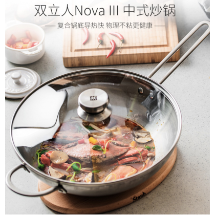 德国双立人厨房家用不锈钢大容量中式炒菜锅蒸锅炊具刀具组合